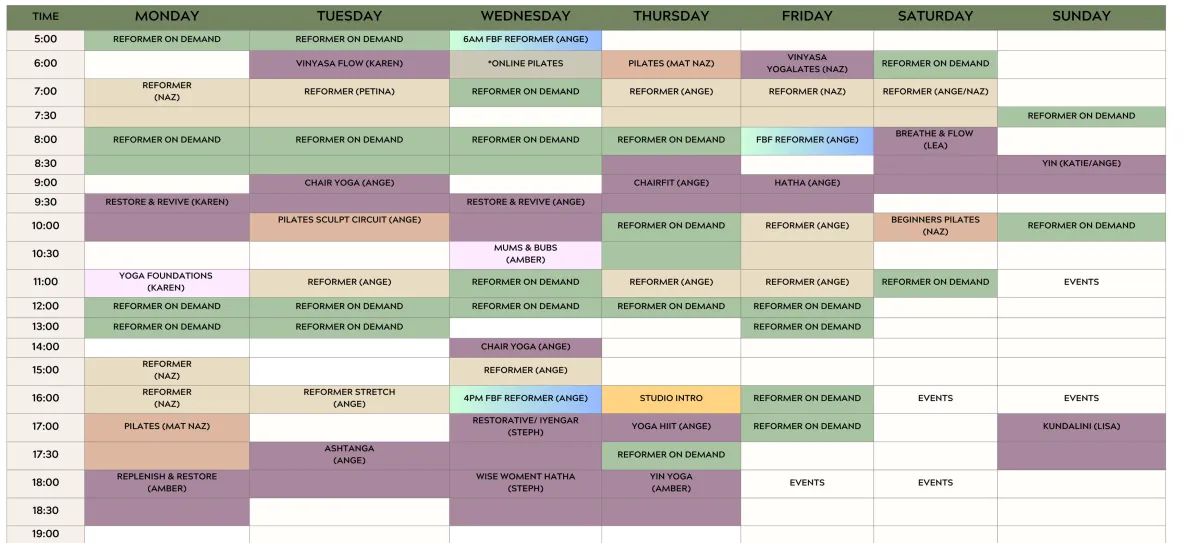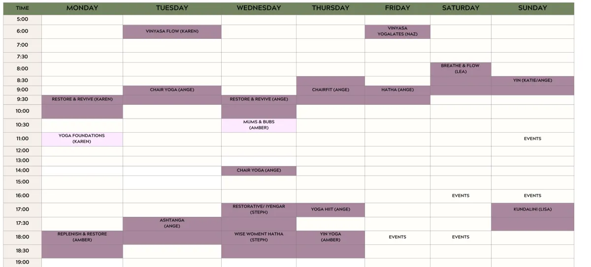 Welcome to our weekly timetable, a space designed to help you find the movement that feels good in your body.