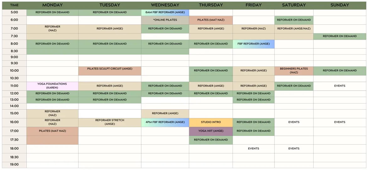 Take a moment to browse the timetable and choose the classes that call to you your mat or reformer is waiting.